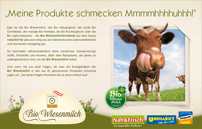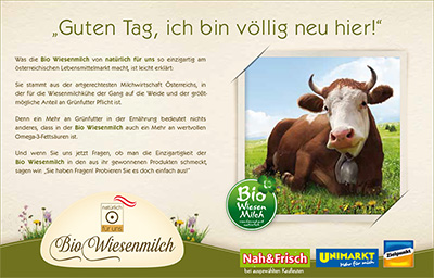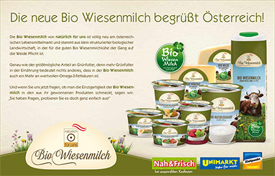 Die Produkteinführung der Bio Wiesenmilch am österreichischen Lebensmittelmarkt.
